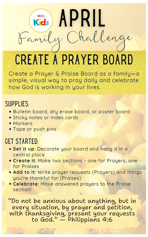 At MCC Kids, we love children and believe that teaching them God’s truth from an early age is essential. Our goal is to make learning about God both meaningful and fun through age-appropriate lessons and engaging activities—all in a safe and welcoming environment. We desire to cultivate a growing faith in our growing kids and help them develop their own personal relationship with Jesus Christ.